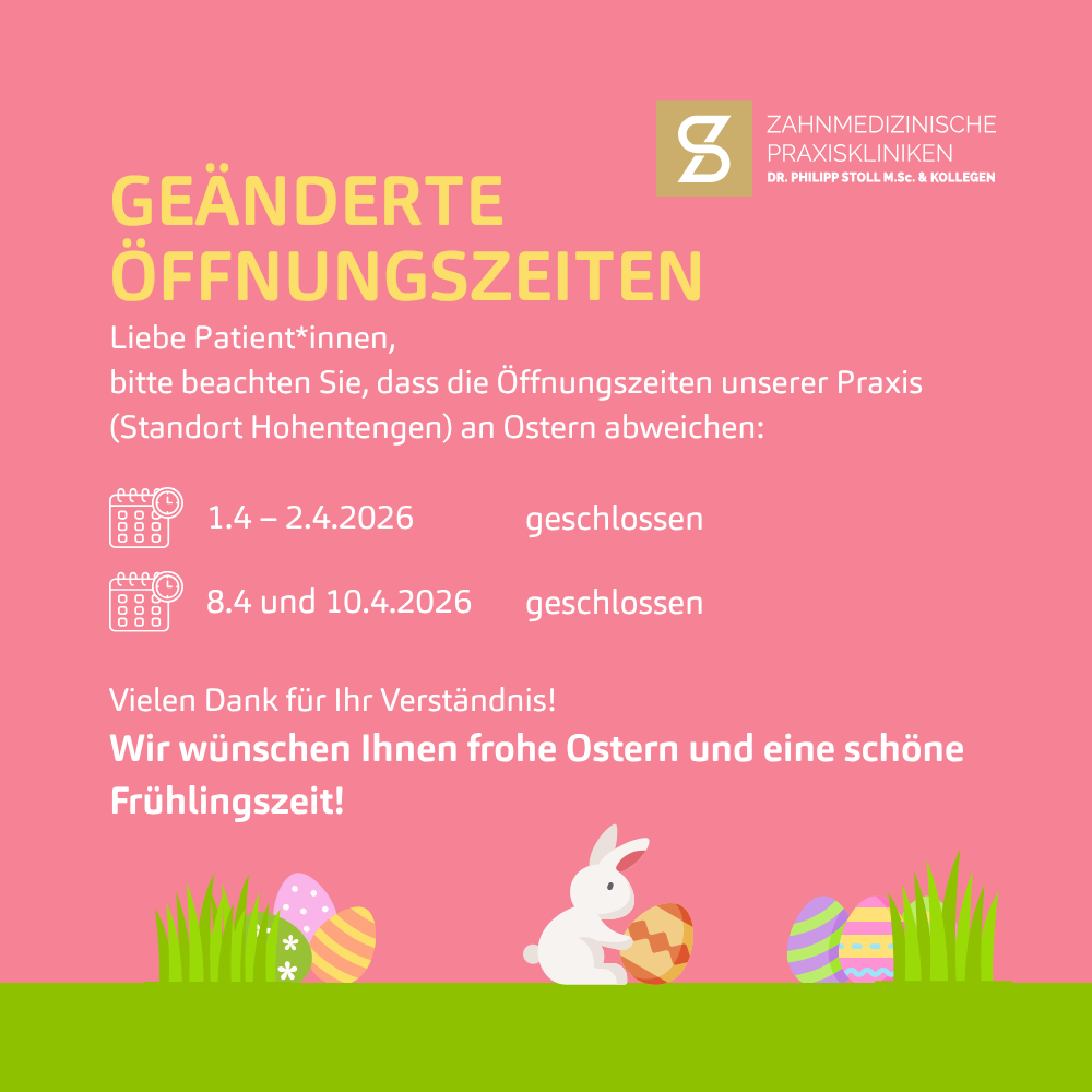 In unserer Zahnarztpraxis Dr. Stoll M.Sc. & Kollegen in Hohentengen am Hochrhein erwartet Sie ein liebevolles und hochkompetentes Praxisteam. Unser Leistungsspektrum ist darauf ausgerichtet, Ihnen bei Ihren persönlichen zahnmedizinischen Anliegen weiterhelfen zu können.